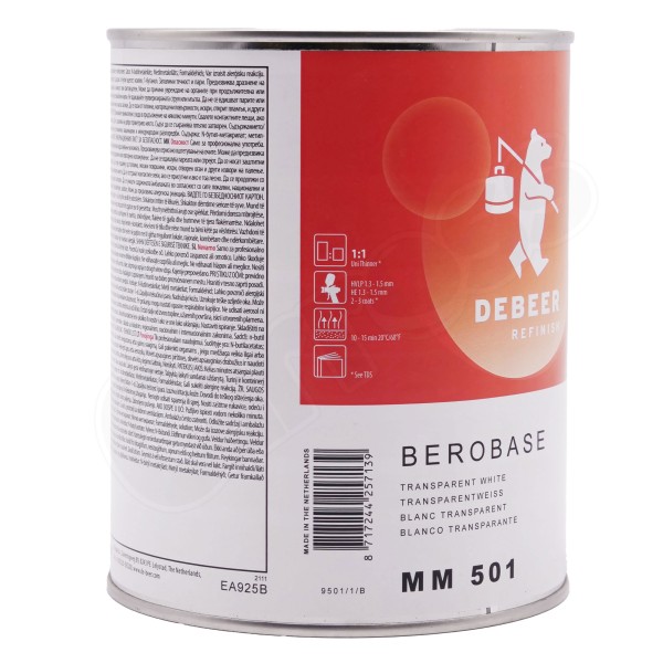 La peinture carrosserie MM501 de chez De Beer appartient à la gamme Berobase de chez De Beer. Cette série 500 est de qualité supérieure pour vos travaux de réparation. Cette gamme de peinture carrosserie professionnelle possède de nombreux avantages :