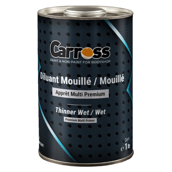 Ce diluant de la marque CARROSS convient parfaitement pour la dilution des apprêts multi premium dans le cadre d'une utilisation en apprêt mouillé sur mouillé